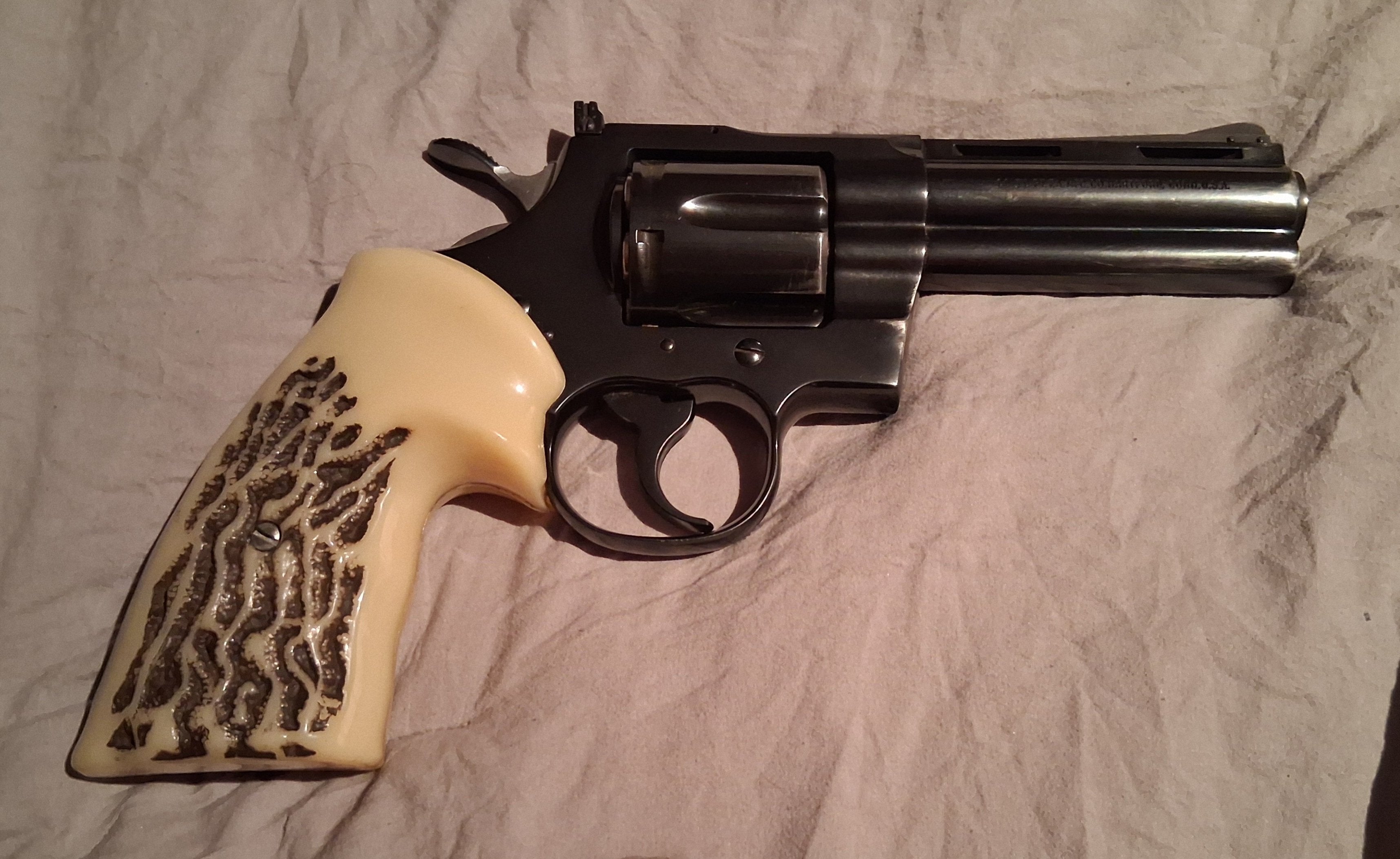 IMO, most buyers are looking for original grips, so while the faux bone might look nice to some, it probably detracts from the value.