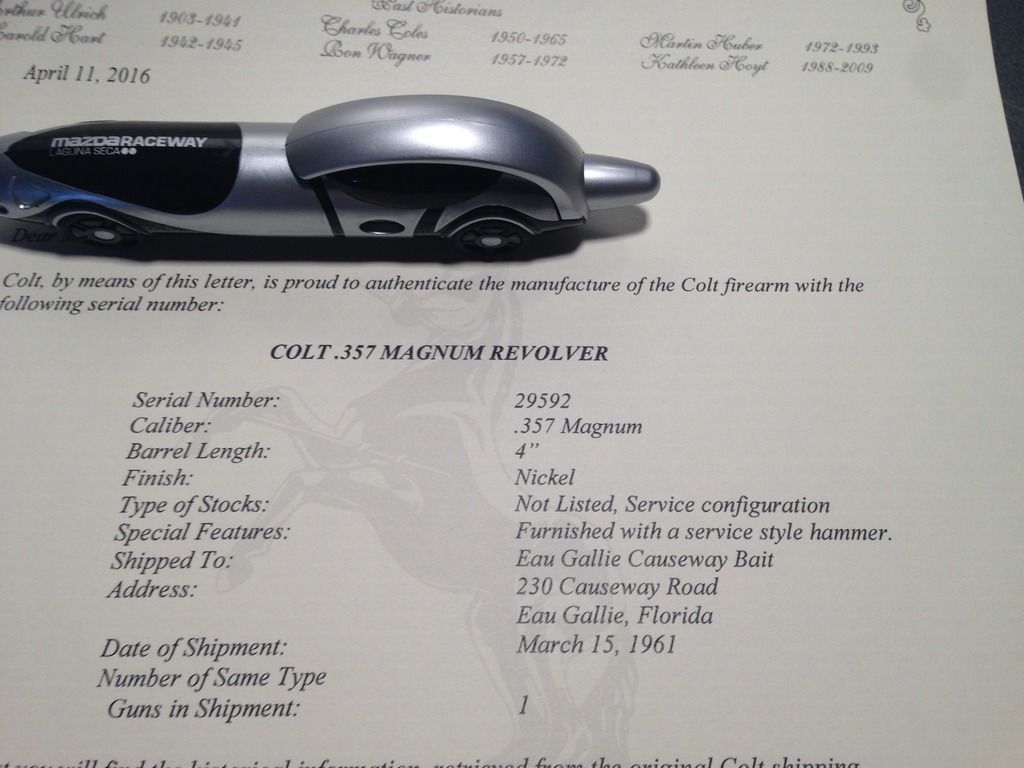 The best way to really know is a letter... 357 Nickel revolvers are very rare... Funny I was reading back to the beginning of this thread and remembering where I came from as a new collector. I started back in the day a 50's era Python and 357 collection. Not done but getting closer:I appreciate the help guys. Filled out the form for colt archives. Also noticed that the pistol has the # 1 engraved below the serial #, and the letter L to the bottom left of the serial # area. If that helps. Thanks